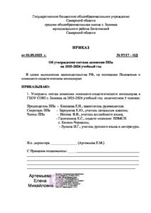 Приказ об утверждении состава комиссии ППк на 2025-2026 учебный год