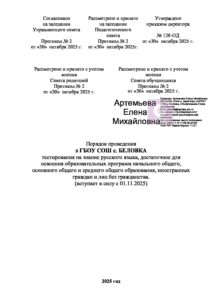 Порядок проведения в ГБОУ СОШ с. Беловка тестирования на знание русского языка, достаточное для освоения образовательных программ начального общего, основного общего и среднего общего образования, иностранных граждан и лиц без гражданства. (вступает в силу с 1.11.2025)