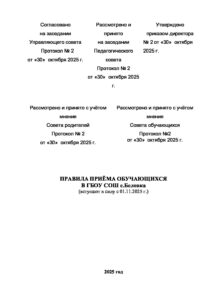 Правила приема обучающихся в ГБОУ СОШ с. Беловка ( вступают в силу 1.11.2025 г.)