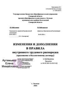 Изменения в Правила внутреннего трудового распорядка ( приложение к Коллективному договору)