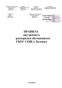 обучающихся; Правила внутреннего распорядка обучающихся ГБОУ СОШ с. Беловка