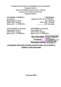 Основная образовательная программа начального общего образования ГБОУ СОШ с. Беловка