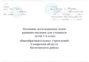 Примерное двухнедельное меню рациона питания 1-4 классы