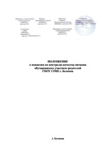 Положение о комиссии по контролю качества питания обучающихся с участием родителей