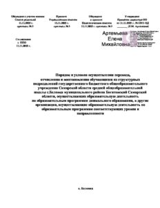 Порядок и условия осуществления перевода, отчисления обучающихся из структурных подразделений ГБОУ СОШ с. Беловка