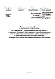 Правила приема на обучение в структурные подразделения государственного бюджетного общеобразовательного учреждения Самарской области средней общеобразовательной школы с. Беловкак муниципального района Богатовский Самарской области , реализующих основную общеобразовательную программу дошкольного образования